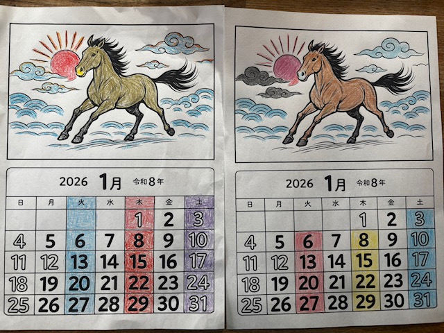 1月カレンダー塗り絵