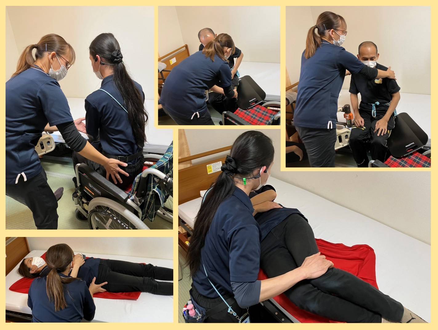 今日は定期的な「ノーリフト指導」の日で、リハビリ職員さんからリフト・スライディングシート・スライディングボードの使い方の確認とアドバイスをしてもらいました😄