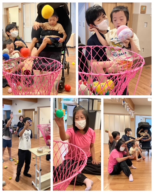 先日、みんなで玉入れゲームをして遊びました!