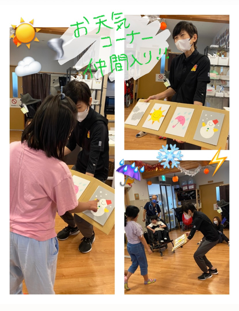 「今日の天気は何かな〜?」と支援員が尋ねると、