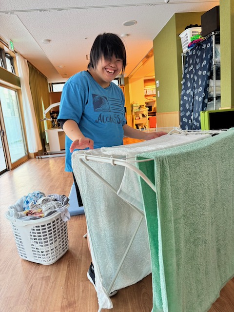 夕方、職員が洗濯物を干していると、ご利用者様から「手伝おうか!」と声をかけてくださいました✨