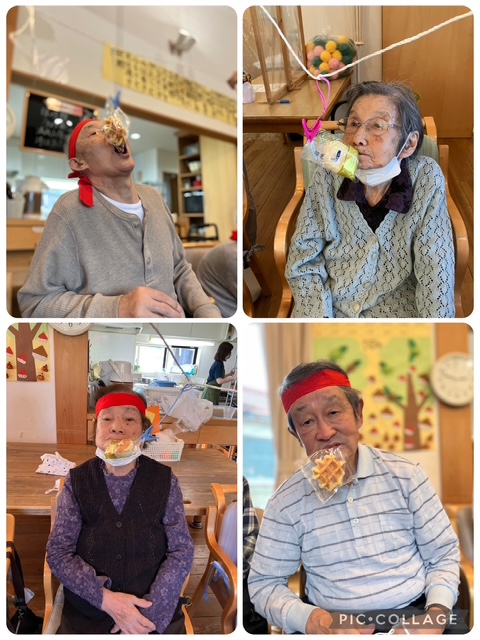 デイひだまりの運動会、いよいよ最後の種目はお楽しみの「パン食い競争」です!