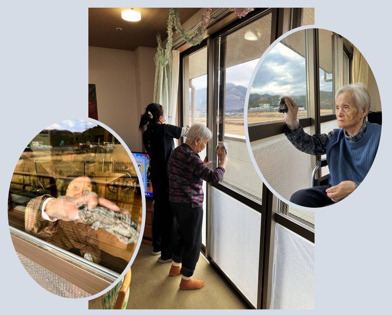 職員と入居者の皆様と一緒に、窓の掃除をしました😄