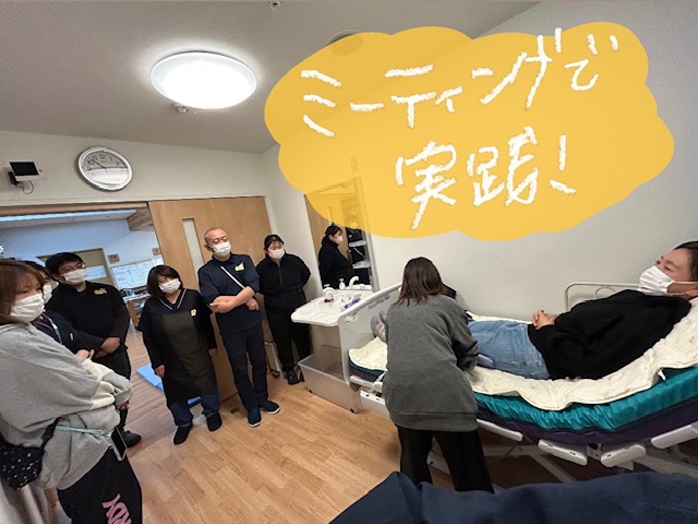 参加できなかった職員へしっかり内容を共有するため、大空職員ミーティングで伝達講習と実践を実施しました✏️🗒️
