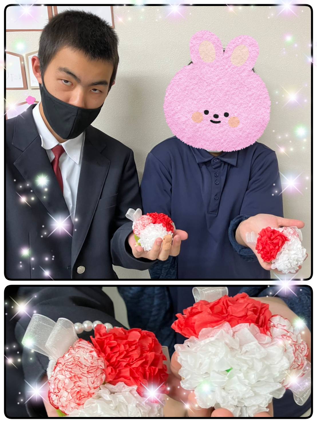 陽空からお祝いとして、手作りのコサージュをプレゼントさせていただきました(🌸)