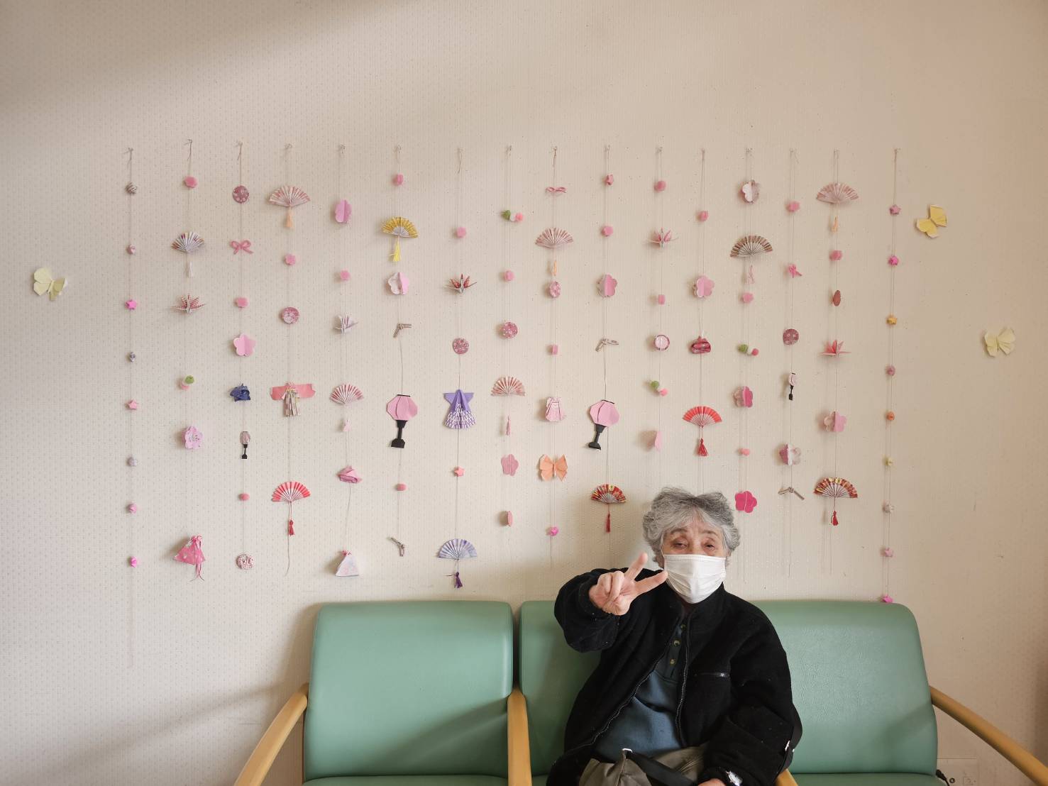 大きな壁には、やさしい色合いの桃の花など、小さくて可愛らしい飾りがたくさん並んでいます。ひとつひとつ丁寧に作られた飾りから、春のあたたかさがふんわり伝わってきます🌸