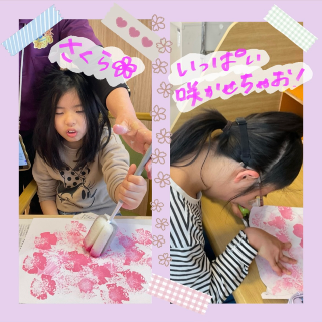 そんなお花見シーズンにちなんで、今日はみんなで桜のお絵描き🎨を楽しみました。