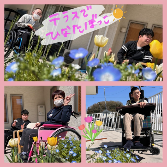 先日、よく晴れた日にテラスに出てひなたぼっこを行いました☀️