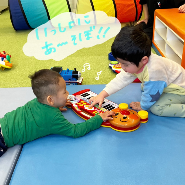 お友だちと同じおもちゃを囲んで、仲良く遊ぶ「仲良しツーショット」が撮れました!