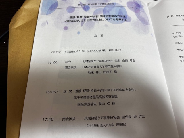大尊敬する、京都きたおおじの山田理事長様が代表を務めておられる「地域包括ケア事業研究会」に参加して参りました。
