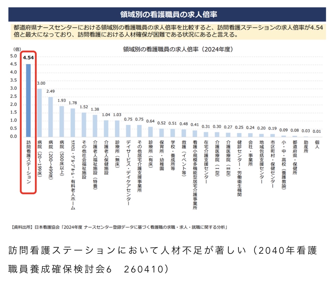 また、現状として、訪問看護ステーションの有効求人倍率4.54。
