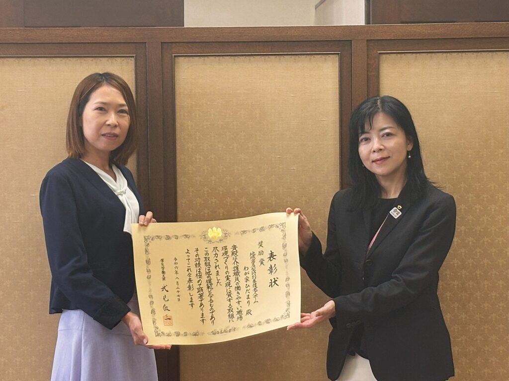 介護職員の働きやすい職場環境づくり 厚生労働大臣奨励賞を受賞いたしました。