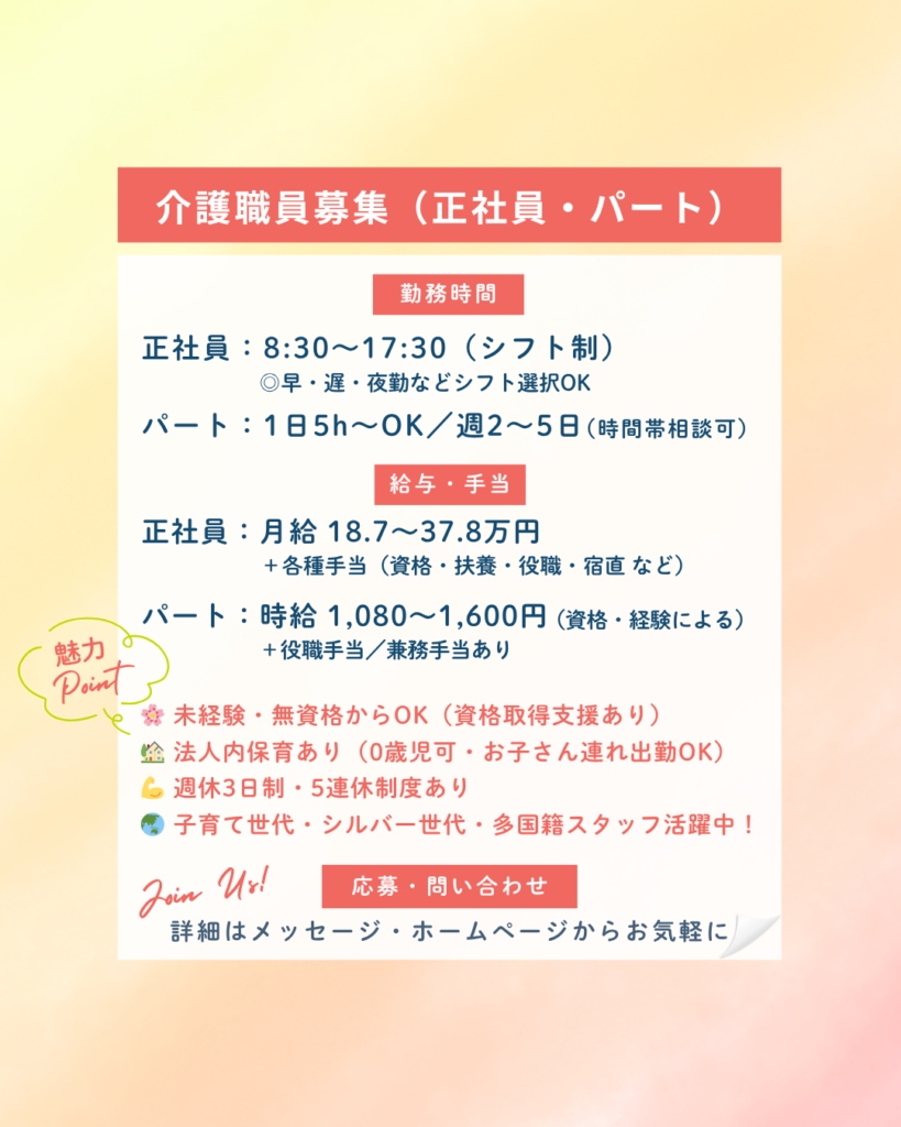 - 📈 資格取得支援・キャリアアップ応援制度あり