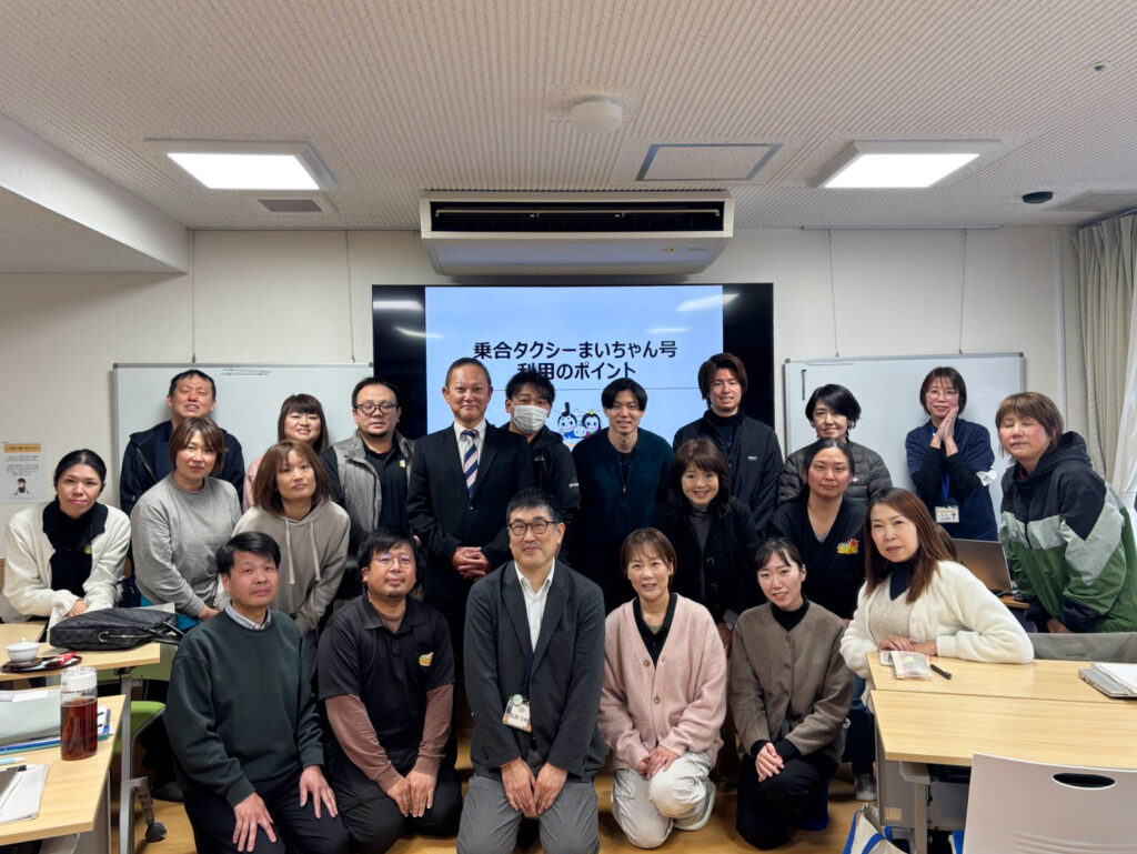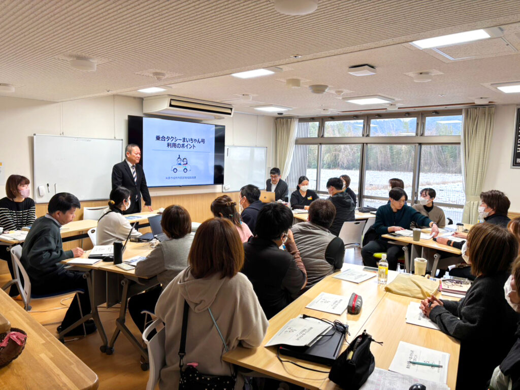 NEWS毎月開催している経営勉強会。1月13日は、米原市の乗り合いタクシー「まいちゃん号」をテーマに、地域交通と福祉の連携について学びました。